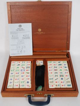 A 20th century contemporary cased bane and bamboo tiled Mah Jong set