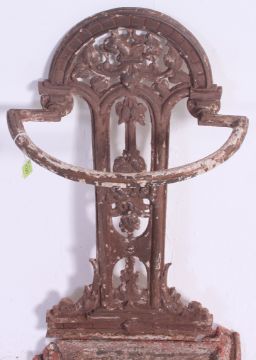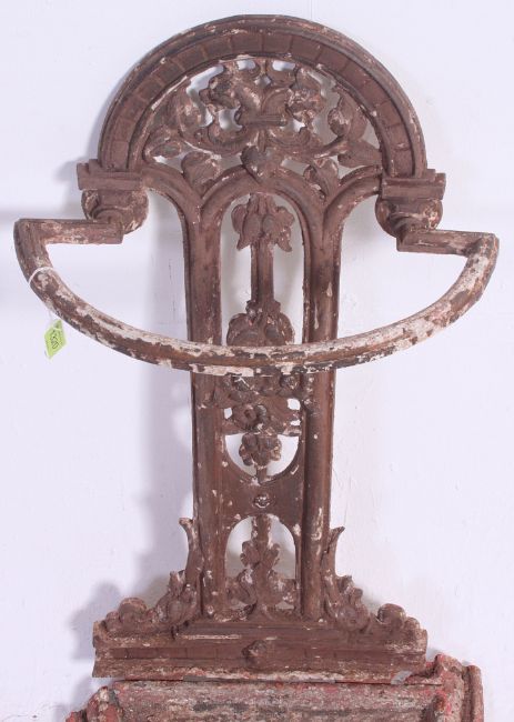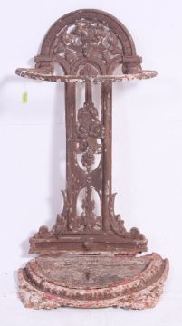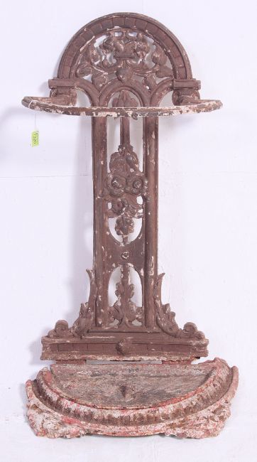 A Victorian Coalbrookdale style cast iron stick - umbrella stand having decorative design with illegible date lozenge and Rd No plates to verso. ( 3 parts )