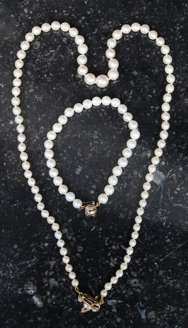 A good quality ladies 9ct gold clasp real pearl necklace. The claps with additional set pearls complete in box