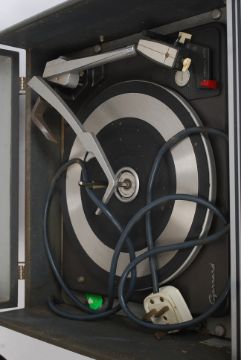 A vintage Ferguson record player with a Garrard deck. Within the original case.