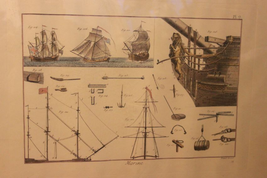 Three vintage framed and glazed Marine lithographs / plates of marine Ships etc