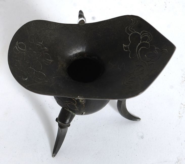 A 19th century Chinese oriental three legged bronze censor bowl / cup. H10cm