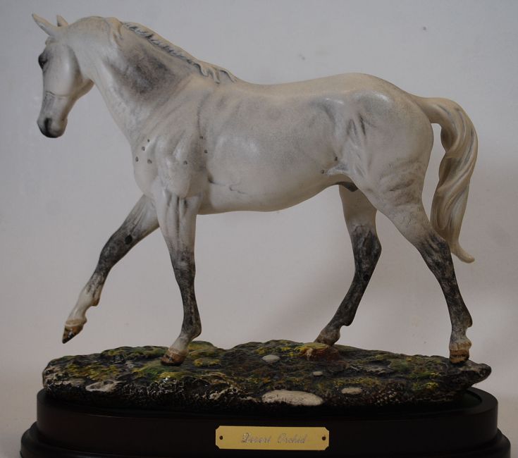 DESERT ORCHID : Royal Doulton figure of the Racehorse Desert Orchid DA134 Limited edition 3887/7500 Boxed with certificate W40cm. From an impressive and extensive private single owner collection of Royal Doulton and Coalport china figurines. Each figure is in perfect condition, complete within original boxes (presentation boxes where present), and each has its certificate present (unless specified). WORLDWIDE POSTAGE AND PACKING AVAILABLE ON ALL LOTS. Standard price to mainland UK -£15.99+VAT, Europe from £19.99+VAT - COMBINED SHIPPING AVAILABLE. Please view website for full details and overseas prices. Whilst every figure has been checked for condition by us and no faults have been found, buyers are reminded to satisfy themselves as to completeness / condition / accuracy of each lot prior to bidding, as per our terms and conditions. Viewing on all lots is welcome by prior appointment only.