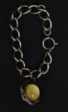 An unusual white metal bracelet with inset ball agate moon stone having decorative banded centre. FREE UK POSTAGE ON ALL LOTS INCLUDING COMBINED PURCHASES ( ECONOMY UN-INSURED 2ND CLASS). 48HR TRACKED AND RECORDED SERVICE £6.99+VAT. OVERSEAS PLEASE VIEW WEBSITE FOR DETAILS