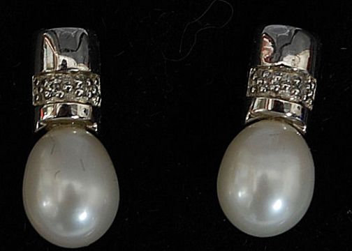 A pair of ladies decorative styled white gold cultured pearl and diamond earrings. FREE UK POSTAGE ON ALL LOTS INCLUDING COMBINED PURCHASES ( ECONOMY UN-INSURED 2ND CLASS). 48HR TRACKED AND RECORDED SERVICE £6.99. OVERSEAS PLEASE VIEW WEBSITE FOR DETAILS