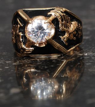 A gilded silver 925 fraternity ring with central large clear stone flanked by griffins either side. Total weight 13.9g Size L FREE UK POSTAGE ON ALL LOTS INCLUDING COMBINED PURCHASES ( ECONOMY UN-INSURED 2ND CLASS). 48HR TRACKED AND RECORDED SERVICE £6.99+VAT. OVERSEAS PLEASE VIEW WEBSITE FOR DETAILS