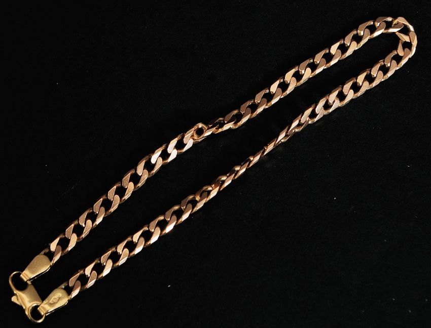 A 9ct gold chain link bracelet. Weight 5.8g. Total length 20cms. FREE UK POSTAGE ON ALL LOTS INCLUDING COMBINED PURCHASES ( ECONOMY UN-INSURED 2ND CLASS). 48HR TRACKED AND RECORDED SERVICE £6.99. OVERSEAS PLEASE VIEW WEBSITE FOR DETAILS