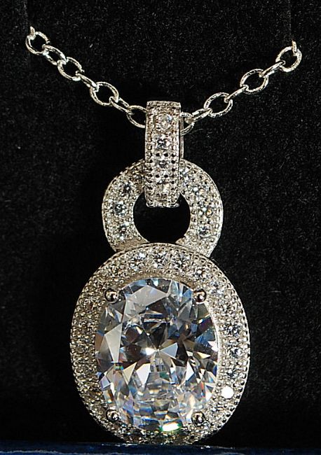 A ladies silver and Cz stone inset pendant on necklace of hooped form. 4.5g FREE UK POSTAGE ON ALL LOTS INCLUDING COMBINED PURCHASES ( ECONOMY UN-INSURED 2ND CLASS). 48HR TRACKED AND RECORDED SERVICE £6.99+VAT. OVERSEAS PLEASE VIEW WEBSITE FOR DETAILS