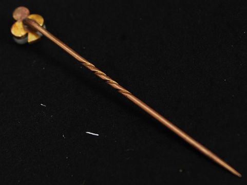 A 15 ct gold, diamond and seed pearl ( club and diamond style ) stick pin - hat pin. The diamond approx 1pnt. Total weight 1.5g. FREE UK POSTAGE ON ALL LOTS INCLUDING COMBINED PURCHASES ( ECONOMY UN-INSURED 2ND CLASS). 48HR TRACKED AND RECORDED SERVICE £6.99+VAT. OVERSEAS PLEASE VIEW WEBSITE FOR DETAILS