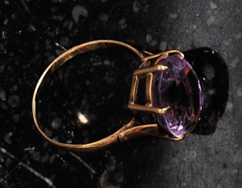 A 9ct gold dress ring set with a large amethyst. Weight 3.1g. Size O FREE UK POSTAGE ON ALL LOTS INCLUDING COMBINED PURCHASES ( ECONOMY UN-INSURED 2ND CLASS). 48HR TRACKED AND RECORDED SERVICE £6.99+VAT. OVERSEAS PLEASE VIEW WEBSITE FOR DETAILS9