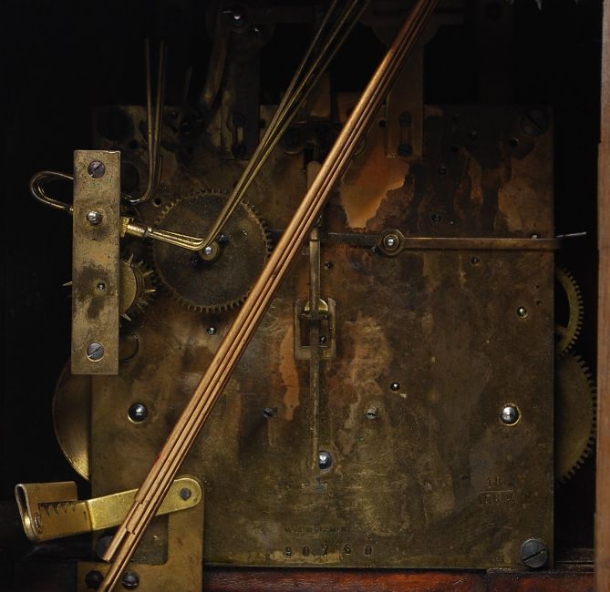 A good early 20th century quarter chiming westminster bracket clock with inset German brass movement. The silvered dial with chased detailing set in a domed oak case