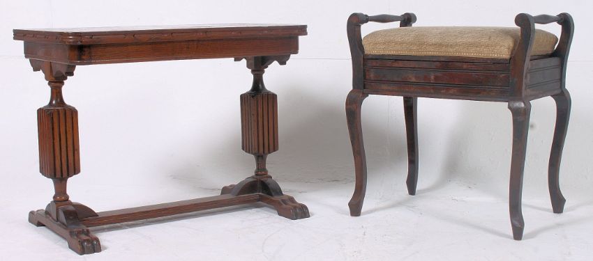 A vintage 1940's CC41 marked side table along with an Edwardian piano stool. H54 x W79cm x 45cm