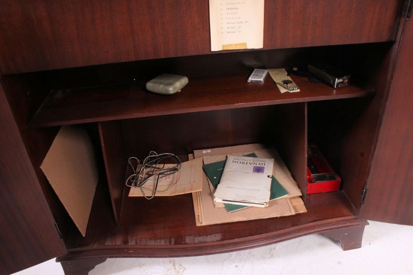 A retro 1970's walnut Queen Anne revival stereogram hi-fi centre having an inset Dynatron entertainment centre.