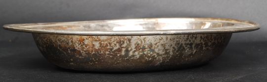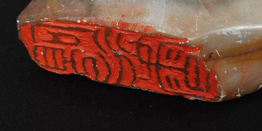 A decorative Chinese silver plated bowl engraved with dragons to the rim and ho-ho bird to centre. Together with a soapstone seal with inscription. W29 cm