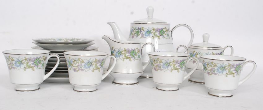 A Noritake 20th century china ceramic part tea service comprising of teapot, cups and saucers.
