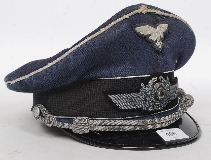 A 20th century German Officers Cap with eagle cap badge and swastika being marked to the interior ( see multiple illustrations )