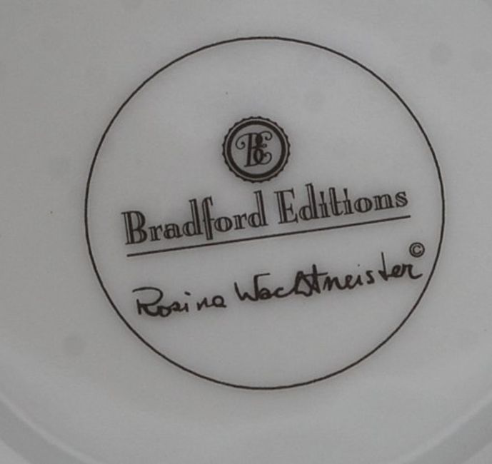 A set of 4 Rosina Wachtmeister tea cups and saucers, each marked to th the base with decorative scenes to each - cats etc