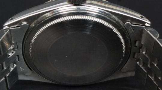 A Rolex 1970's Oyster Perpetual Datejust gentlemans chronometer wristwatch. Blue faced dial with silvered baton numerals and crown top. With Date aperture centre right. Set on a Rolex stainless steel strap in original box. Model No 1603. Cal.1570