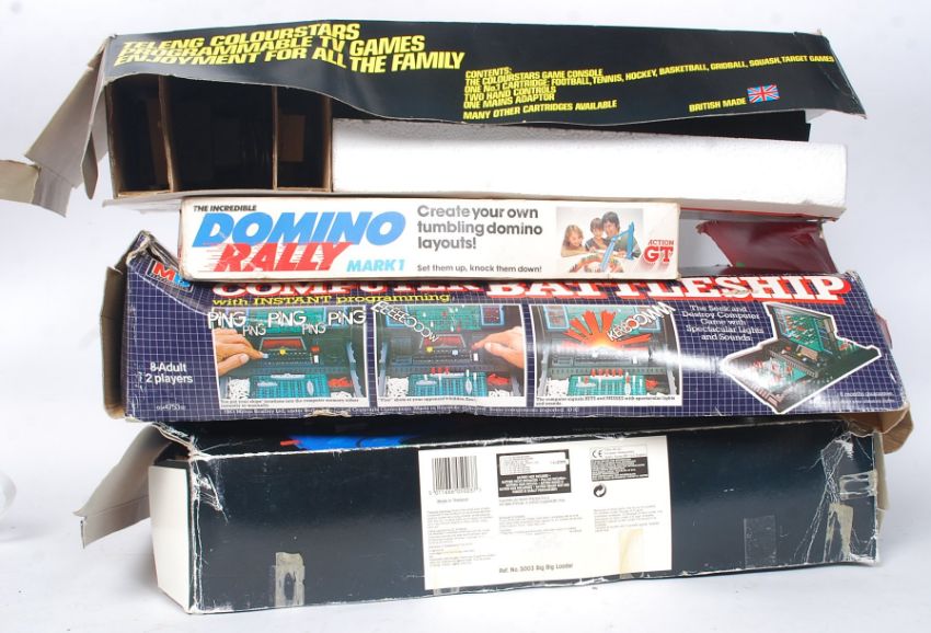 A boxed retro Teleng Colourstars TV / Video game with controllers along with Computerised Battleships, Big Big Loader etc