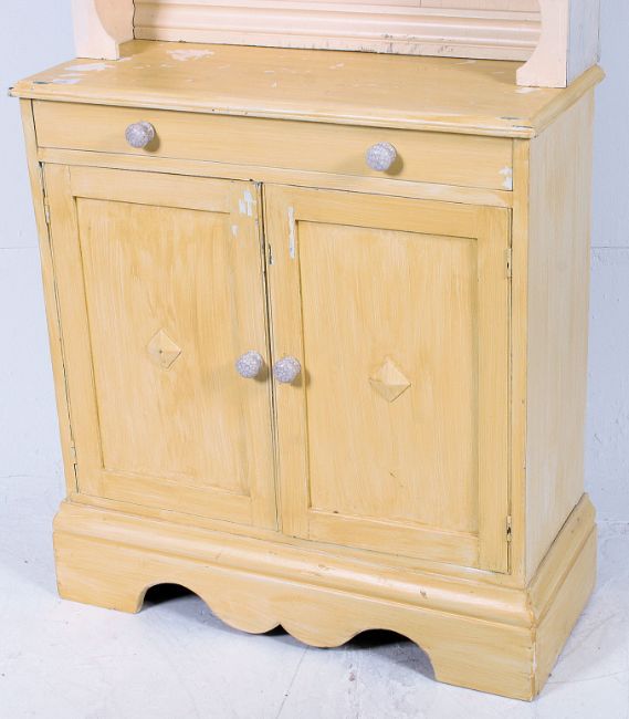 A 20th century pine painted shabby chic dresser having upright gallery plate rack over cupboard beneath. H200 x W79 x D34cm