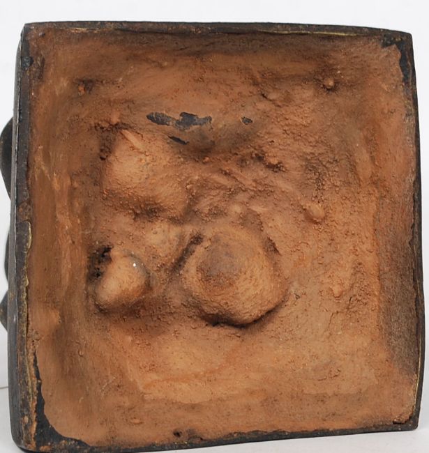 An eastern bronze figurine of a meditating monk bearing original traces of gilding raised on plinth base. H15 cm