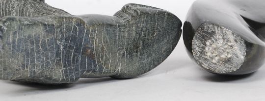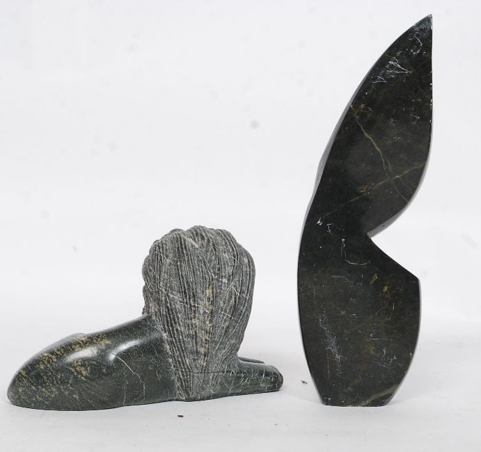 A late 19th serpentine carved lion together with an inuit style carved stone figurine. H22 cm