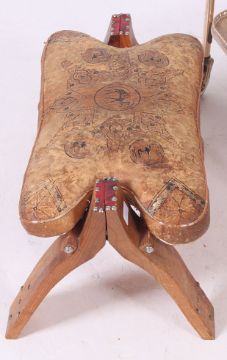 A collection of furniture to include a standard lamp, retro serving trolley, camel stool etc. H154 x W27cm