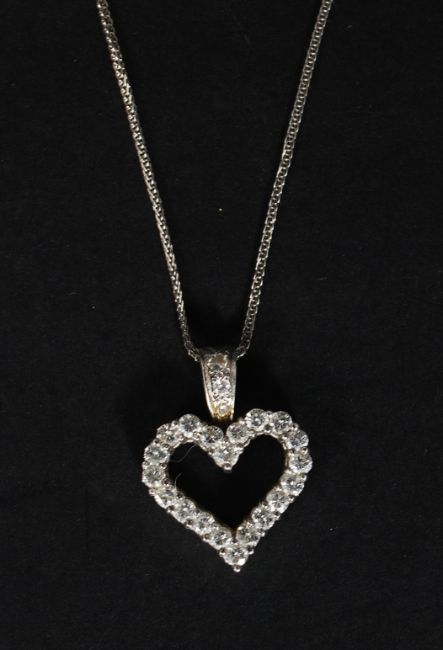 A 14ct white gold chain with diamond heart shaped pendant having approx 1ct of diamonds. Weight 6.5g