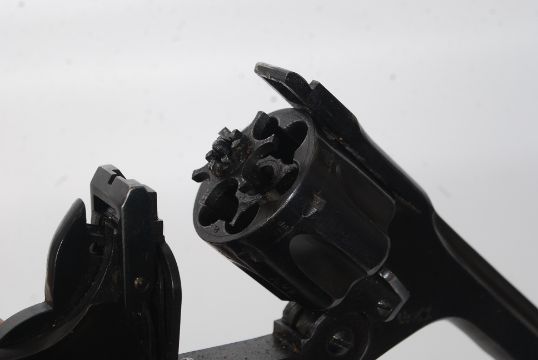 An English Enfield revolver * six shot revolver with 5 inch barrel, profs marks, serial number ZeE1171, deactivated 26/10/1992, with certificate. AM 2 stamped to barrel.0.38 calibre