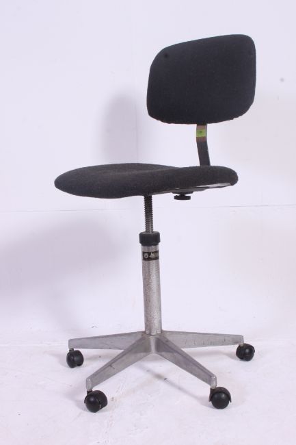 A 1970's retro stainless steel typists Industrial swivel chair with padded seat and back rests. Measures: 95 x 43 x 45.