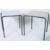 A pair of retro industrial school tables having a melamine top raised above metal tubular legs. H73 x W61 x D61cm