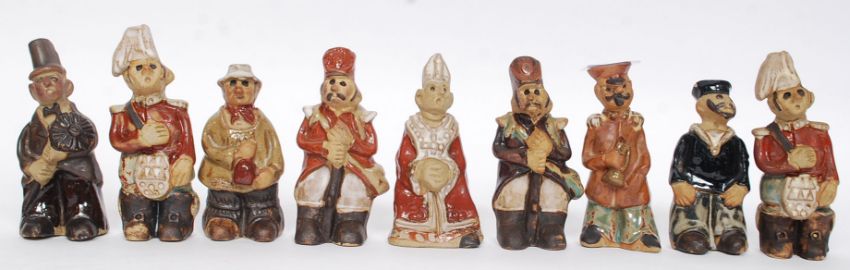 TREMAR; A collection of 9x Tremar pottery figures - Chimney Sweep, Sailor, Bishop, Soldier and others.