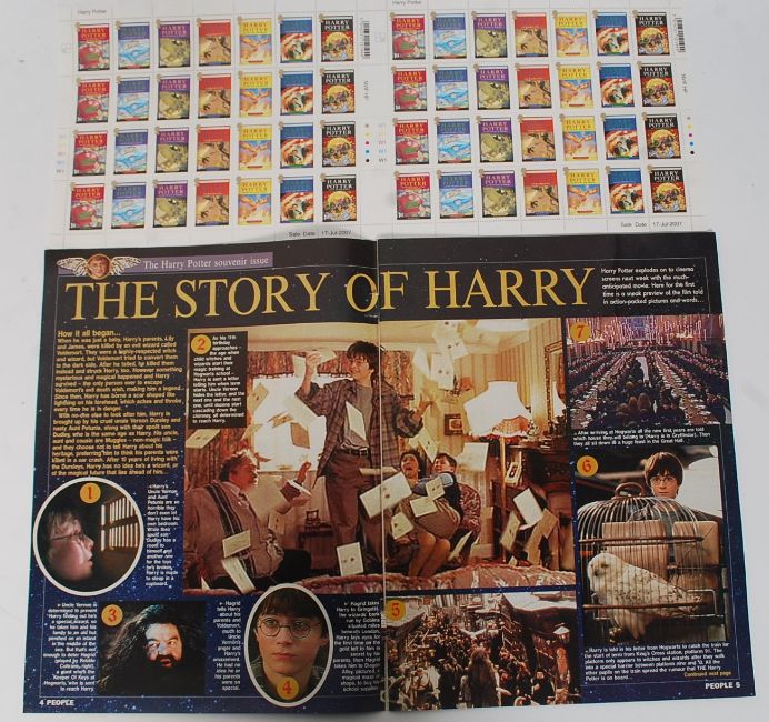 STAMPS: An unused sheet of Harry Potter book cover issue stamps, along with a related magazine. Current face value of £34.72
