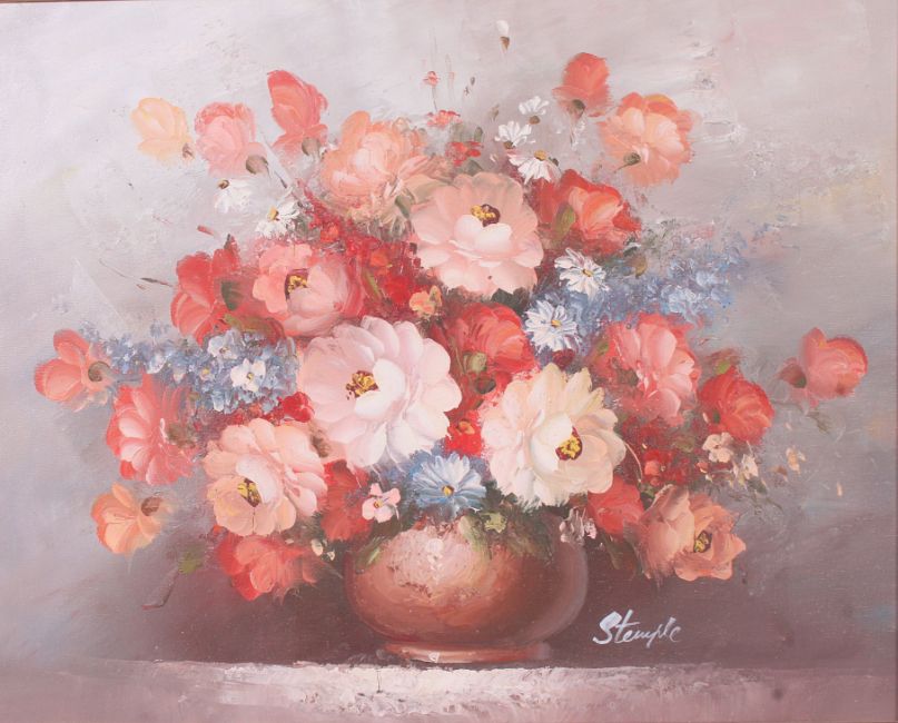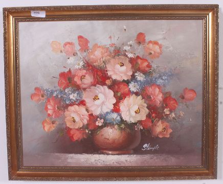 A 20th century oil on canvas of a still life study of a flower arrangement