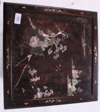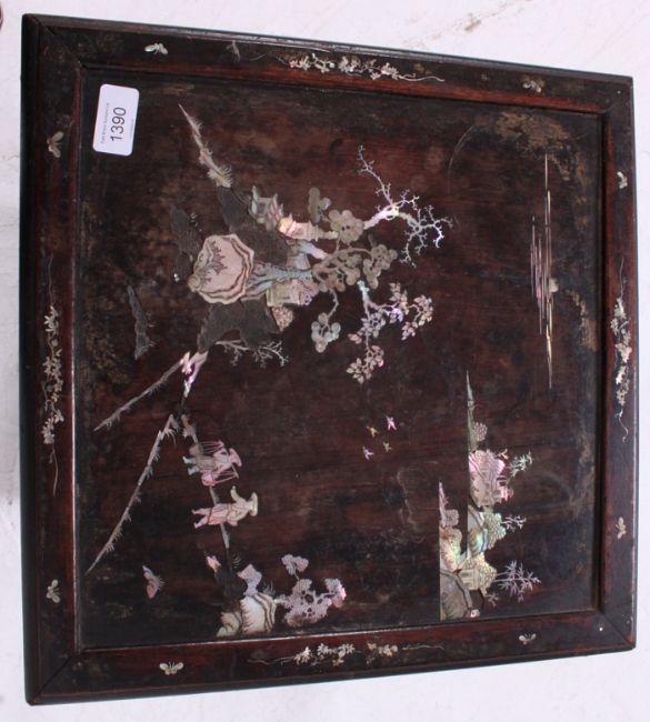 A Victorian / early 20th century mother of pearl inlaid Japanese planter. Twin tiers, with oriental scene to top. H65 x W39 x D39cm
