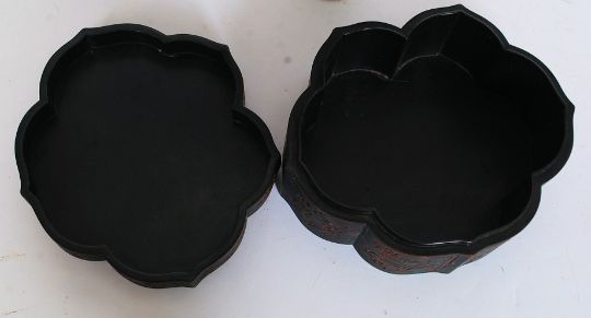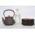 A Japanese Arita vase having moonlit mountain scene against a pale blue ground being signed to the base. Together with a lacquer and inlaid box and a Japanese iron tea kettle.