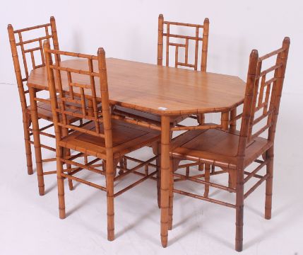 A set of 4x chairs and table, each with a faux bamboo style. H70 x W130 x D72 cm