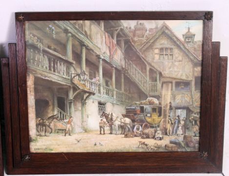 A good pair of 1930's Art Deco oak large wall picture frames in the Odeon style having inset prints to each. Measures: 43 x 58.