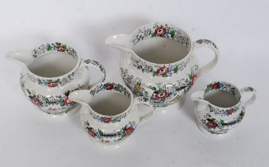 A set of 4 early 20th century Staffordshire ceramic jugs of graduating size having hunting scenes