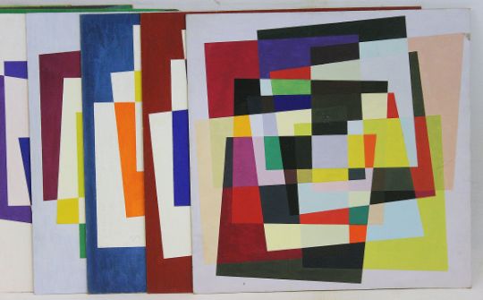 Douglas Herbert Courtenay Auburn (1916 - 2000) A collection of 10 geometric abstract oil on board panels. Measures 62cms x 62cms