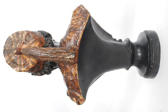 A late 19th / early 20th century plaster bust study of a blackamoor being set on plaster ebonised socle plinth base.