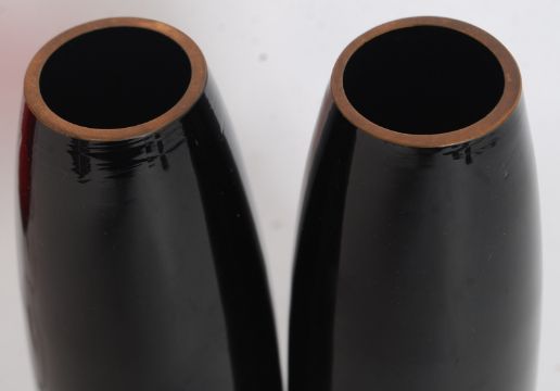 A pair of Bohemian Egyptian revival spill vases. Each with painted enamel Egyptian dancers and gilt banding to each