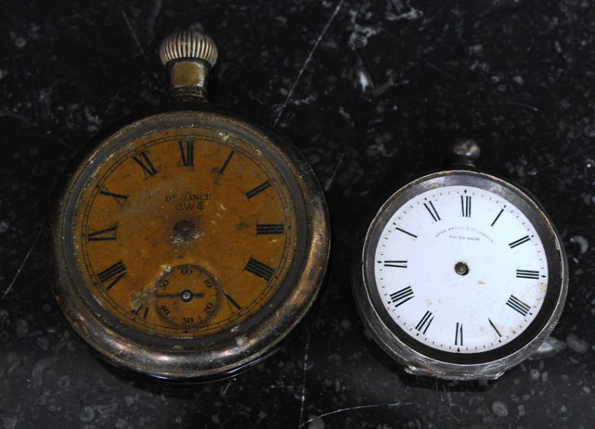 A John Myers of London silver ladies pocket watch together with an American pocket watch ( both af ) FREE UK POSTAGE ON ALL LOTS INCLUDING COMBINED PURCHASES ( ECONOMY UN-INSURED 2ND CLASS). 48HR TRACKED AND RECORDED SERVICE £6.99+VAT. OVERSEAS PLEASE VIEW WEBSITE FOR DETAILS