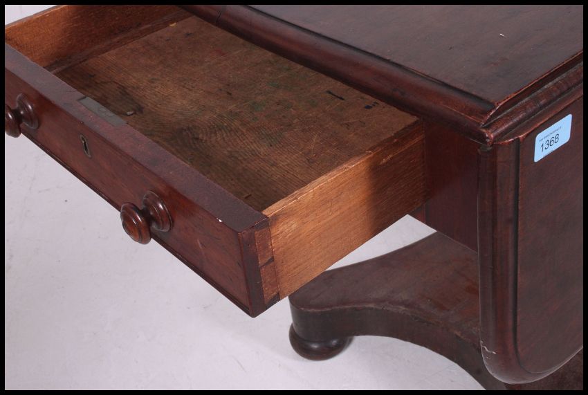 A Regency mahogany sofa table . Raised on a quadruped column base with singe drawers to one end.