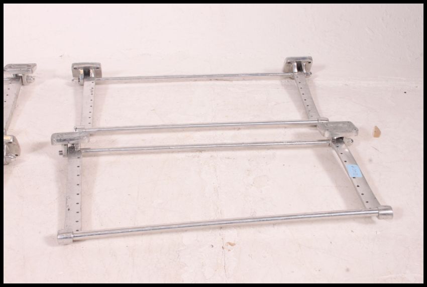 A fabulous set of chrome 4 x 1970's carriage luggage racks. Each with bracket fitments having open centres with holed surrounds to be strung. Alternative panels could be fitted