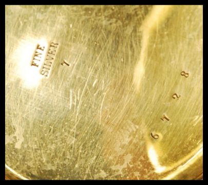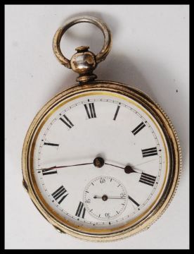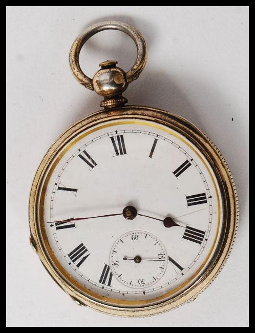 A white metal ( marked ' fine silver ' ) enamel faced pocket watch.