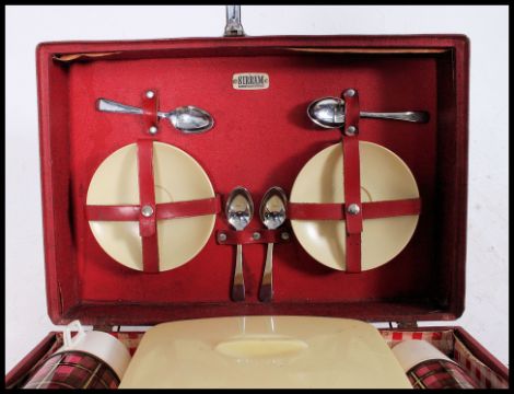 A vintage / retro Sirram travel picnic hamper set. 14x91x28cm