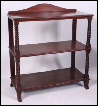 A 19th century mahogany inlaid dumbwaiter buffet. Raised on barleytwist columns with 3 tiers having stage gallery top above. H119 x W107 x D46cm