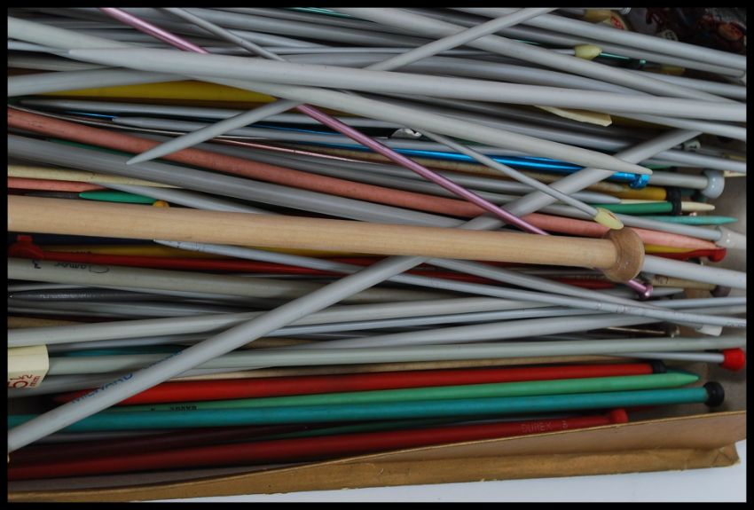 A collection of vintage sewing and needlework items to include 2 large tins of buttons, sewing needles, patterns etc