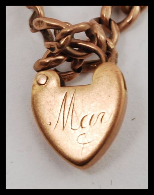 A 9ct gold ladies kerb linked small bracelet / chain with heart shaped padlock. Total weight 4.6g